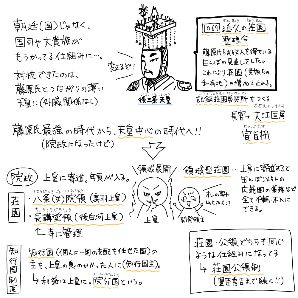 後三条天皇により、藤原氏最強時代から天皇が政治をやれる時代に…!