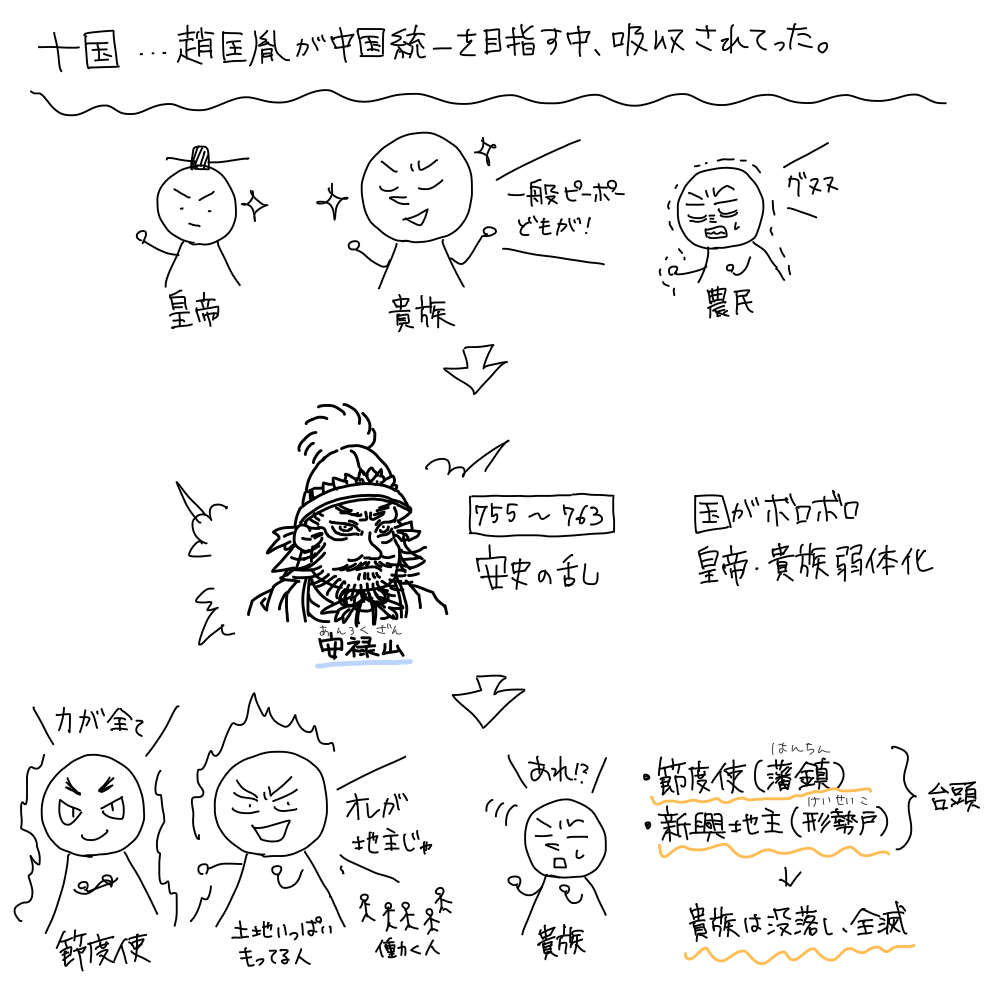 そこで力をつけてきたのが節度使、軍のリーダー的な役の人です。