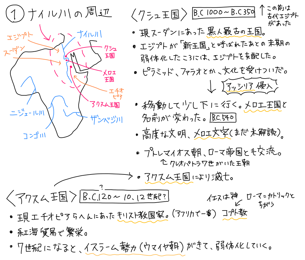 アフリカ大陸には川がいくつかあって、その周辺の文明を見ていきます!