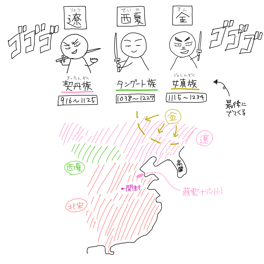 そのあと五代十国時代に一部の地域をもらったことで、北宋にとっては脅威が敷地内にいる恐ろしい状態になりました。