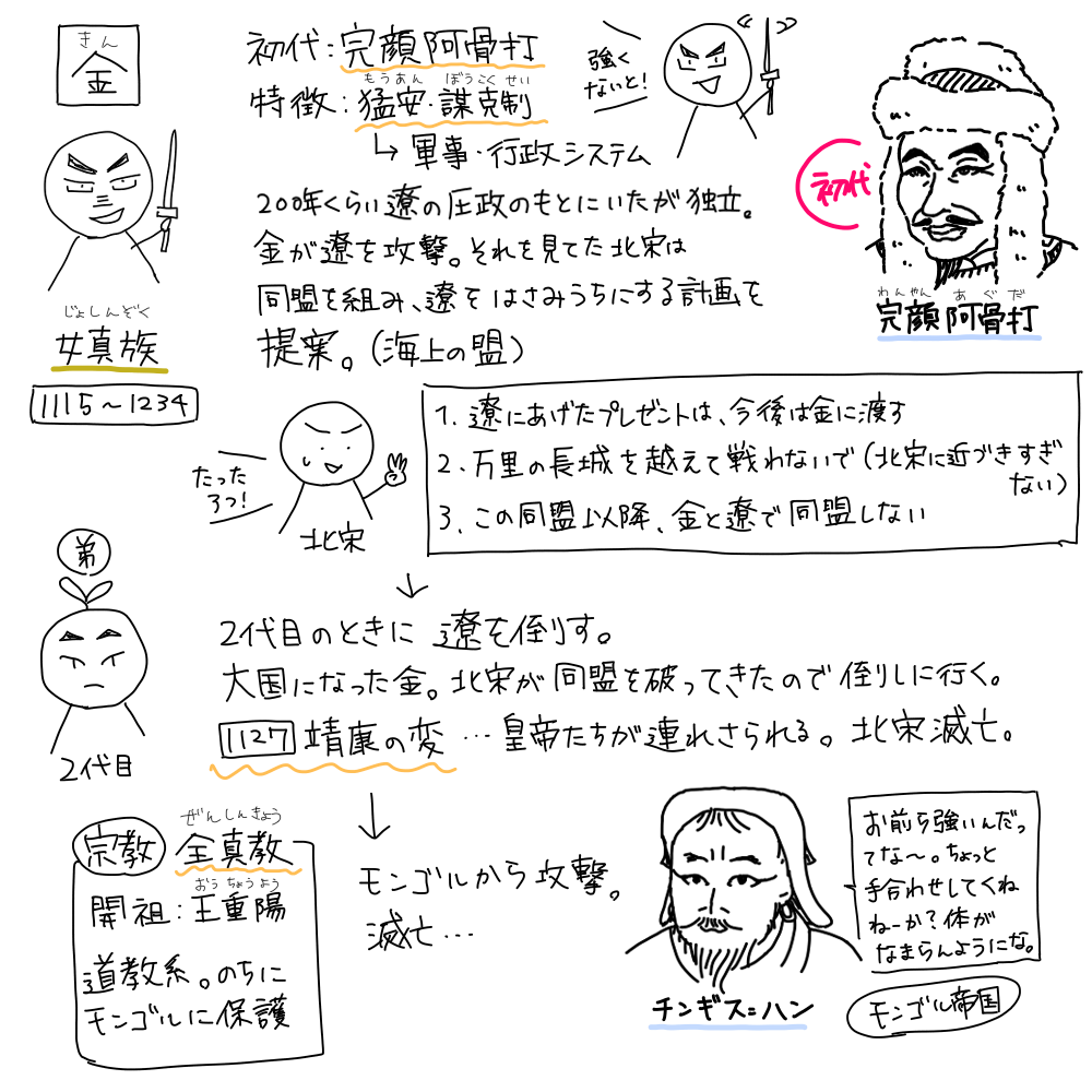 ラストは金。完顔阿骨打(わんやんあぐだ)が建国。