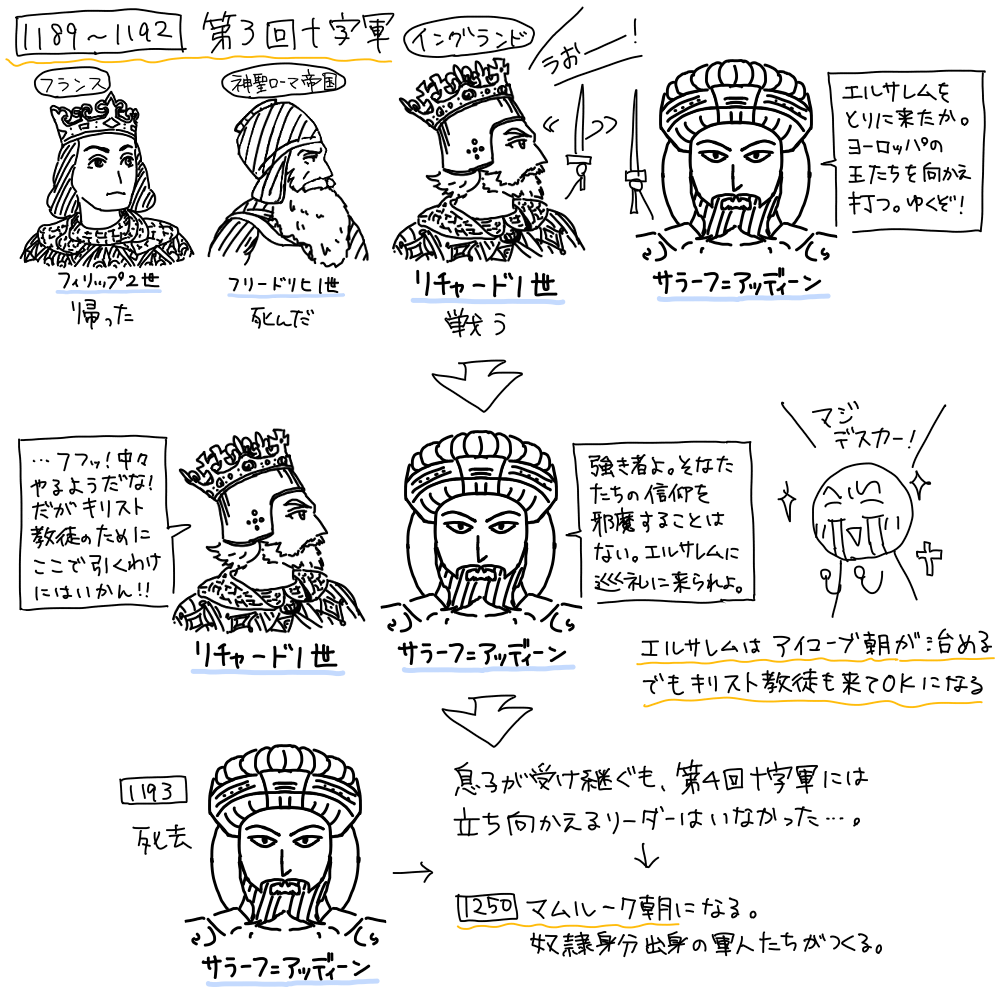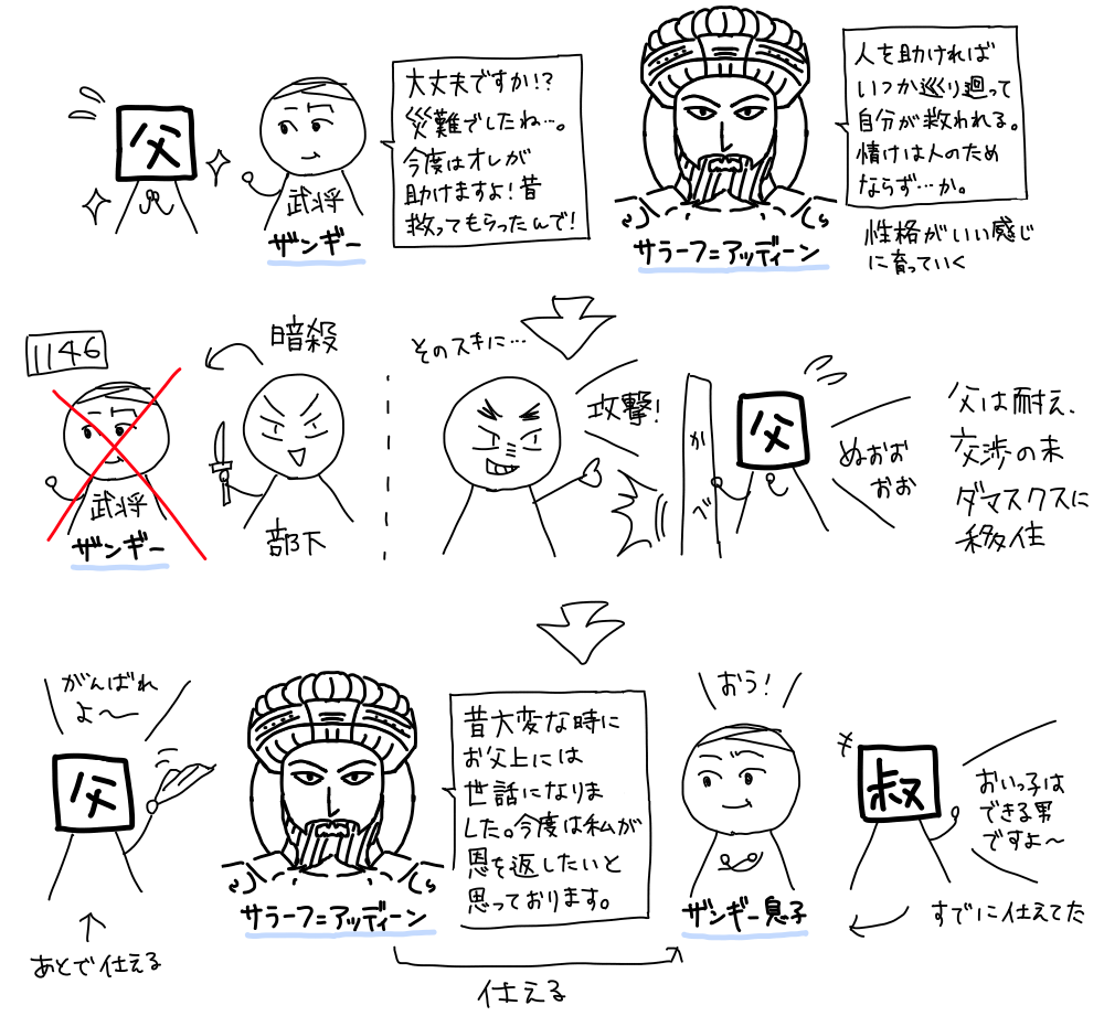 サラディンの生まれた年は確定されてないんですが、1137〜1138年と言われてます。